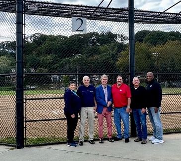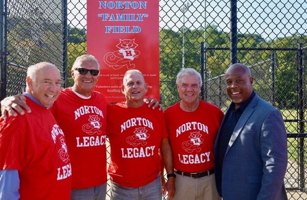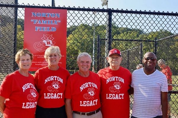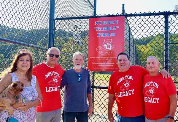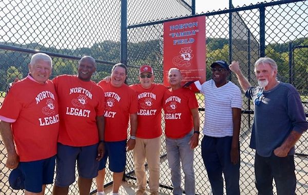 Gail, Jerry, Leo, Eddie, Harry, and Steve scooted over to Mill Dam to get a picture at field #2 -- soon to be Norton Family Field. The Family part truly being quotational, as the field is actually dedicated to all of those who ever participated: campers, counselors, 'Cats and Mice, coaches and volunteers, moms and dads...
