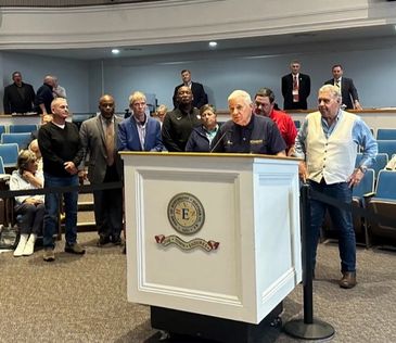 Immediately after the resolution was passed, our leadership group appeared in photos with the Huntington Town Council. Our contingency included, left to right: Eddie Norton, Jerry Asher, Leo Driscoll, Todd Jamison, Gail Lamberta, Harry Waller, Steve Henry, and Tommy Forte.